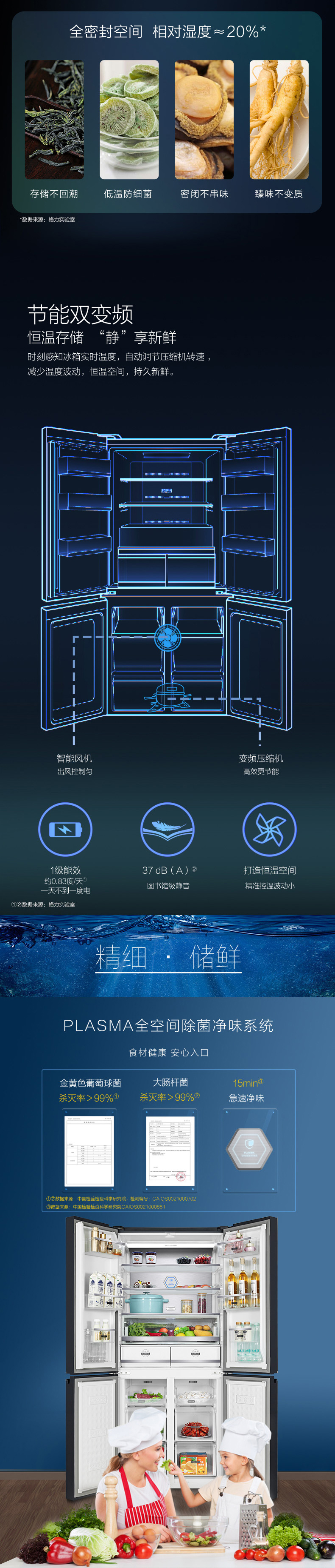 針對每種食材進行精細化分區,定制專屬保鮮艙,涵蓋肉類保鮮、果蔬保鮮、母乳儲存、干貨儲存以及除菌凈味五個維度,確保每一件食材的新鮮儲存